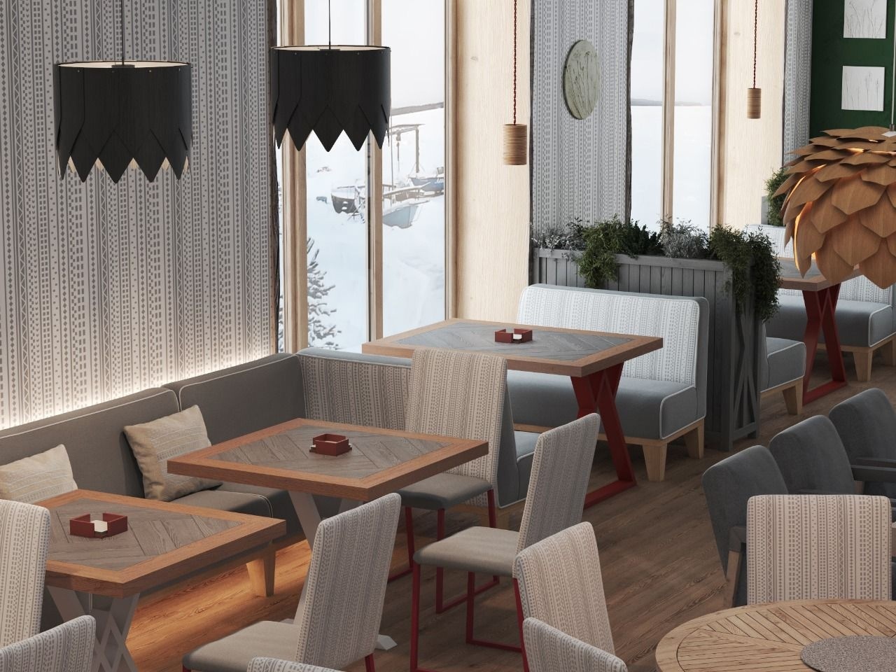 Меню кафе разработано с учетом пятидневного пребывания и включает как комплексное питание, так и свободное меню, отражающее богатство поморской кухни. Современная интерпретация традиционных поморских блюд, приготовленных из свежей рыбы, водорослей и мидий, представляет собой гастрономическое путешествие по вкусам Севера.