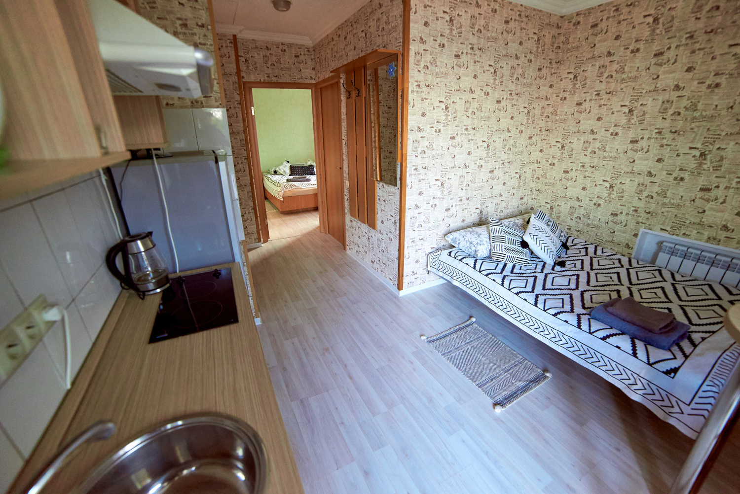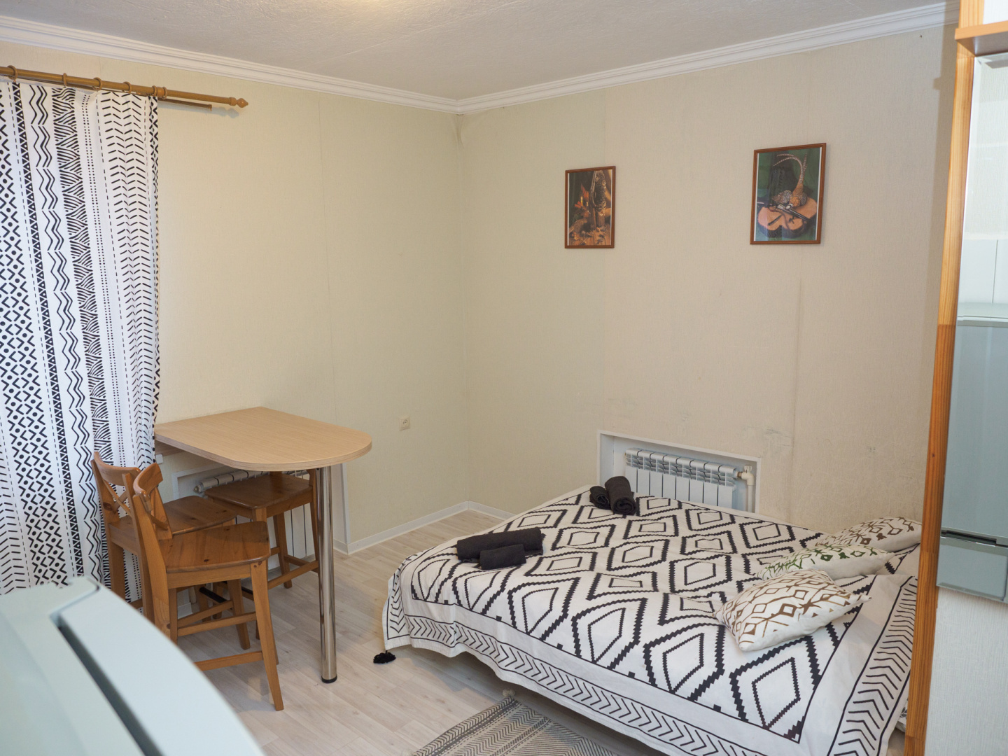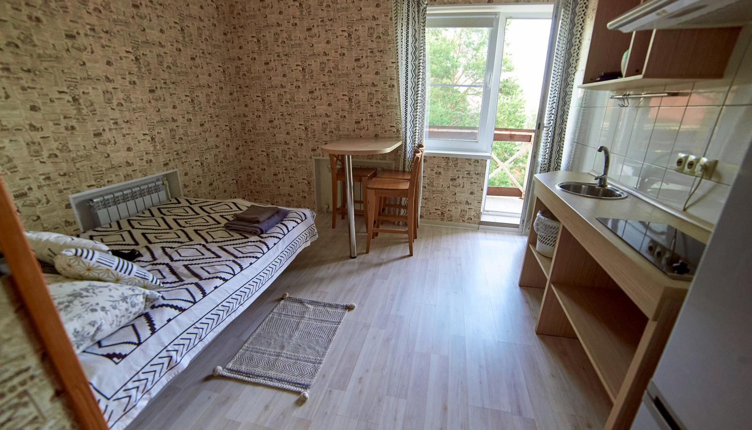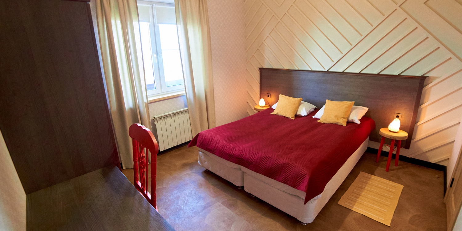 Номера стандартной категории расположены в коттеджах «Луна» и «Земля». В «Луне» они находятся на втором этаже. Эти уютные номера могут разместить от двух до четырех человек. В них есть удобные кровати (две односпальные, две двухъярусные или одна двуспальная), санузел с душевой кабиной, окно, вешалка и комод. В стоимость проживания входят постельное белье и полотенца. В коттедже «Земля» номера категории «Стандарт» находятся на первом этаже. Они состоят из двух комнат и санузла. В каждой комнате есть двуспальная и три односпальные кровати. Эти просторные номера идеально подходят для семейного отдыха. Также можно выбрать уютные экодомики на скале с панорамным окном. В экодомиках есть кровать, стол, стулья, теплый пол и обогреватель. Обратите внимание, что в экодомиках нет кухни и холодильника, а санитарные комнаты расположены в отдельном здании. Домики находятся в начале этнопарка, примерно в 600 метрах от кафе.