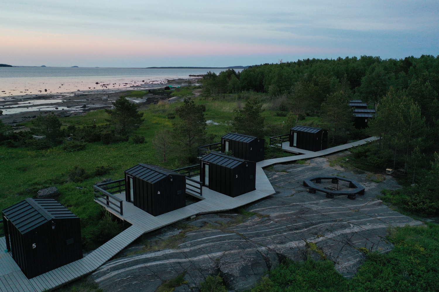 Размещение в категории «комфорт+» предлагает просторные семейные номера с отдельной спальней и мини-кухней на втором этаже коттеджа «Земля». Эти номера вмещают до пяти человек. В номере есть холодильник, мини-кухня, уютная спальня с двуспальной кроватью и диван в гостиной. За дополнительную плату можно установить дополнительное место — раскладушку. Номера с балконом, откуда открывается вид на Белое море. Также гости могут выбрать отдельный уютный лесной домик. В доме просторная кухня с камином, спальная комната с двуспальной кроватью и диван в гостиной. Размещение в доме вмещает до шести человек. За дополнительную плату также можно установить дополнительные раскладушки. С террасы дома открывается вид на Белое море, а окна выходят на хвойный лес.