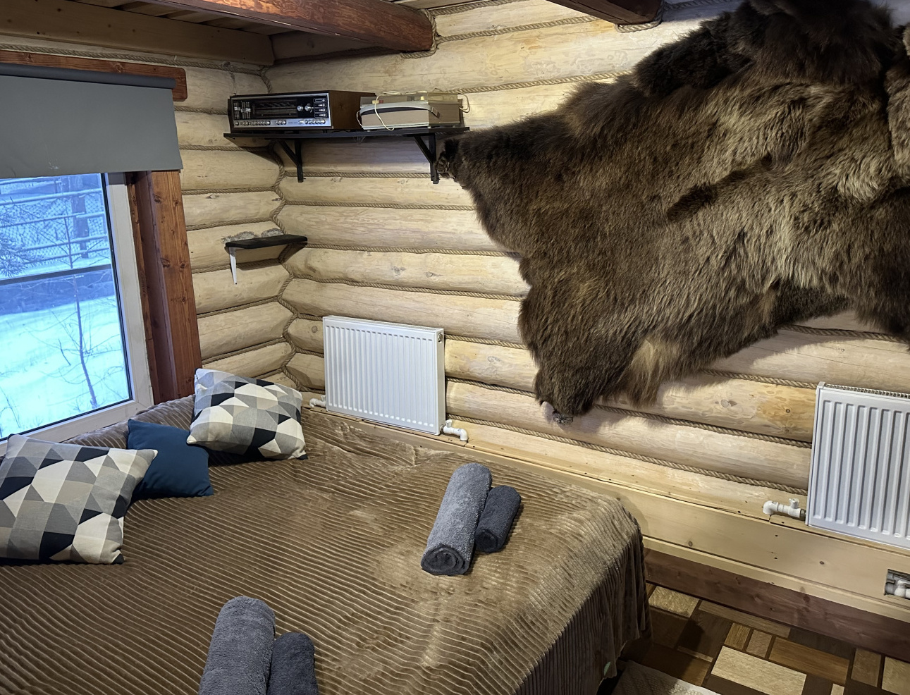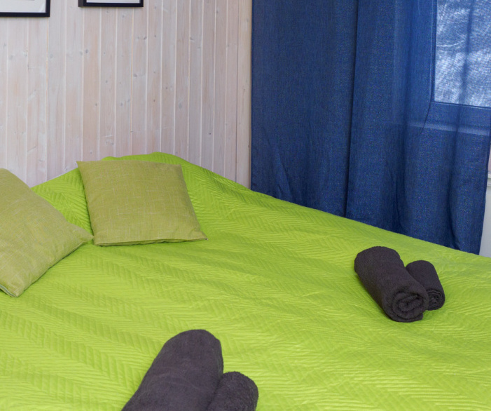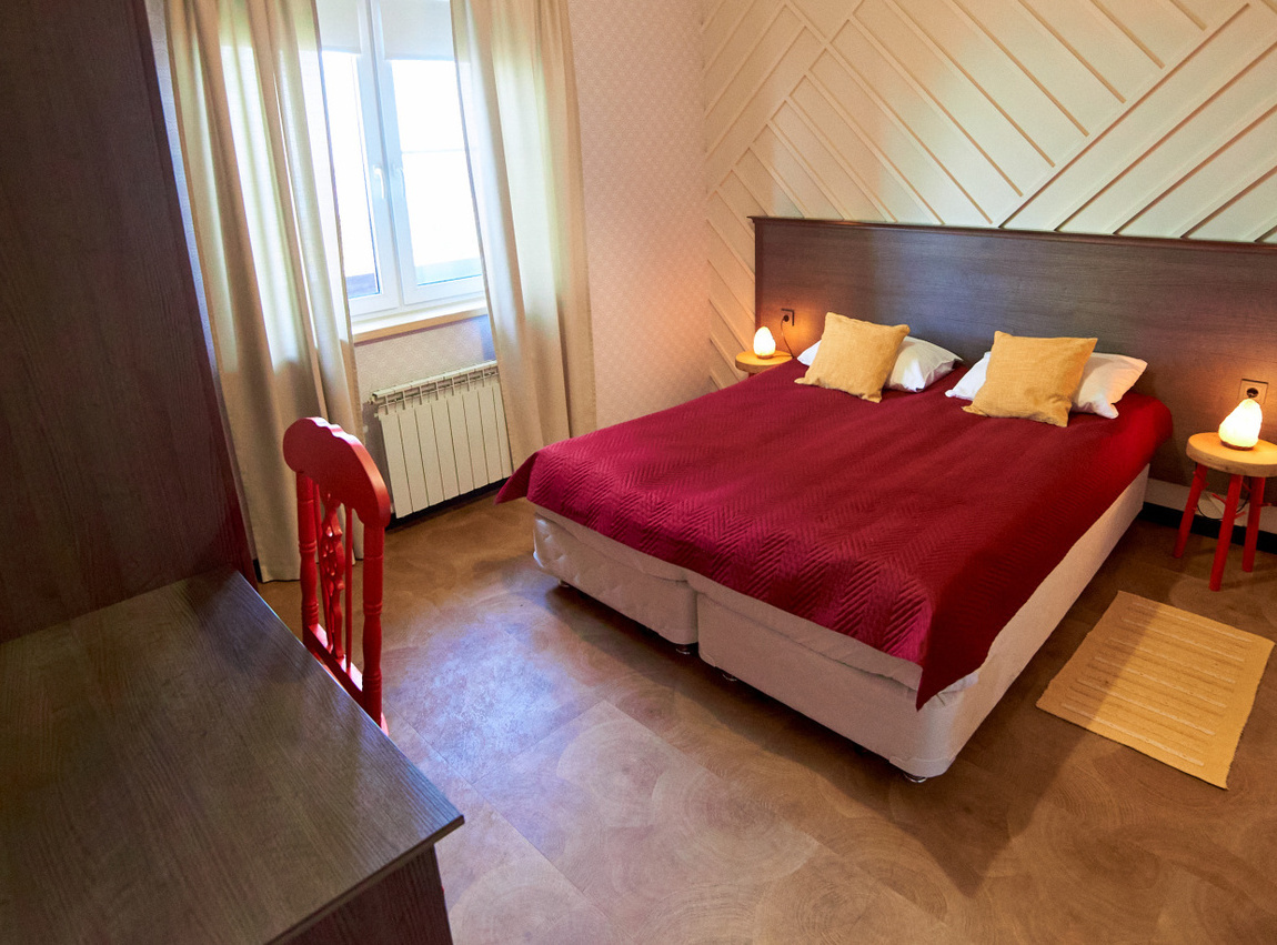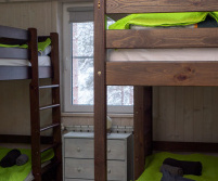 Коттедж также предлагает семейный двухкомнатный номер. Одна комната — спальня с двуспальной кроватью, другая — детская с двумя двухъярусными кроватями. Между номерами небольшой холл с диваном. В такой комбинации можно разместить до восьми человек.