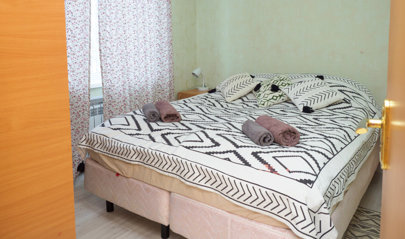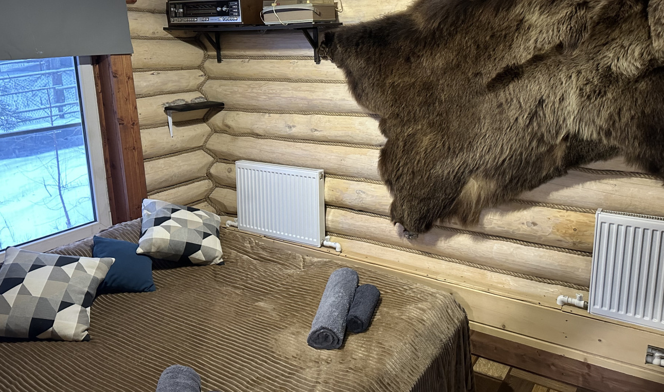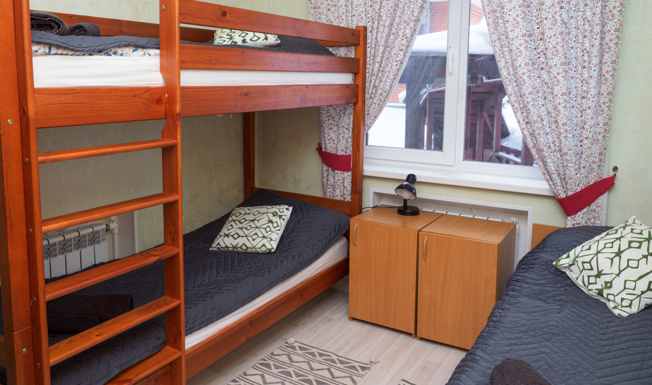 Коттедж также предлагает семейный двухкомнатный номер. Одна комната — спальня с двуспальной кроватью, другая — детская с двумя двухъярусными кроватями. Между номерами небольшой холл с диваном. В такой комбинации можно разместить до восьми человек.
